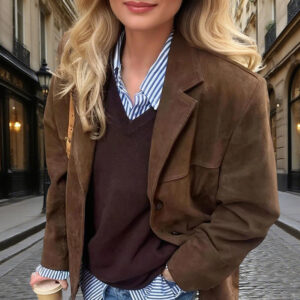 Achieve a look of timeless elegance with our Women’s Suede-Look Blazer Jacket. This classic coat combines the sophisticated texture of suede with a versatile, easy-to-wear design. The sharp V-notch lapel and full button-front closure create a polished silhouette that effortlessly elevates any outfit, from a casual t-shirt and jeans to office-ready trousers.